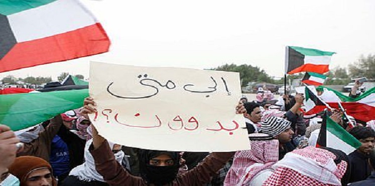 خلال الاحتجاجات الأخيرة في الكويت، رفع بعض المتظاهرين لافتات تطالب بالحصول على الجنسية الكويتية. ويطلق على مجموعة الأشخاص الذين لا يحملون أية جنسية اسم “البدون”. وتطلق الحكومة الكويتية عليهم اسم “المقيمين بصورة غير قانونية”، باعتبارهم يعيشون على الأراضي الكويتية بصورة غير قانونية من وجهة النظر الحكومية.