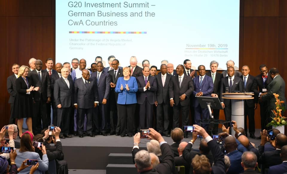 وهو ما أكدته المستشارة الألمانية إنجيلا ميركل بالإشارة إلى أهمية المبادرة الألمانية لشراكة مجموعة العشرين مع أفريقيا في قضايا السلام والهجرة والتغير المناخي، في إطار مواجهة التحديات المشتركة، وأشارت أن إفريقيا تحتاج لتحقيق الازدهار الاقتصادي بجانب المساعدات التنموية، وأشادت باتفاقية التجارة الحرة التي تمكن من مواجهة الصعوبات الجمركية التي تحقق مبدأ الشراكة مع إفريقيا لزيادة استثمارات القطاع الخاص