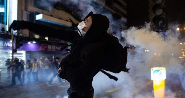 أطلقت شرطة مكافحة الشغب في هونج كونج الغاز المسيل للدموع على آلاف المحتجين الذين ارتدى الكثير منهم أقنعة بعد اشتباكات في مراكز تسوق وفي حي سياحي مهم مع تحول الاحتجاجات المناهضة للحكومة إلى الفوضى عشية عيد الميلاد.