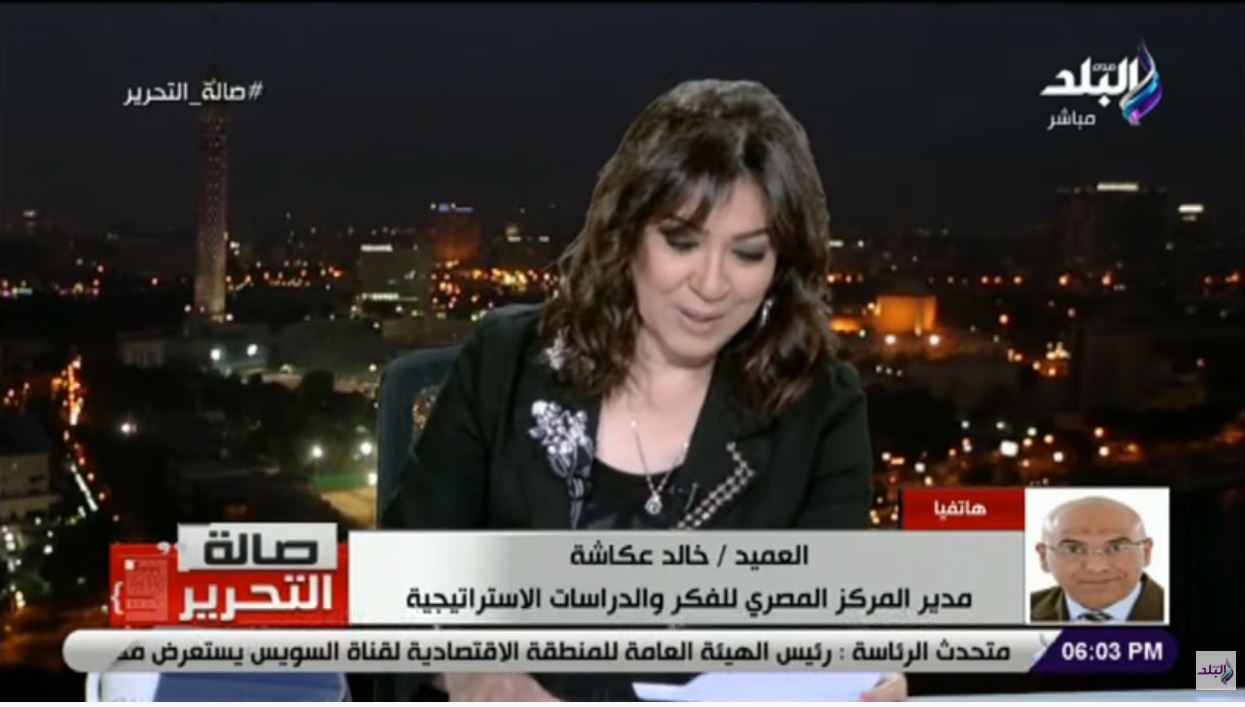 مداخلة هاتفية لد. خالد عكاشة ببرنامج صالة التحرير – قناة صدي البلد “جهود مصر لمواجهة الأزمة في ليبيا”
