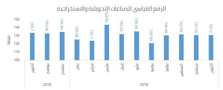 أصدر الجهاز المركزي للتعبئة العامة والإحصاء البيانات الأولية للرقم القياسي لإنتاج الصناعات التحويلية والاستخراجية عن شهر أكتوبر 2019، والتي تضمنت بلوغ الرقم القياسي للصناعات التحويلية والاستخراجية (بدون الزيت الخام والمُنتجات البترولية) مُستوى 131.20 خلال أكتوبر 2019، مقابل 131.15 خلال سبتمبر من ذات العام، ويوضح الشكل التالي التطورات على الرقم القياسي خلال عام.