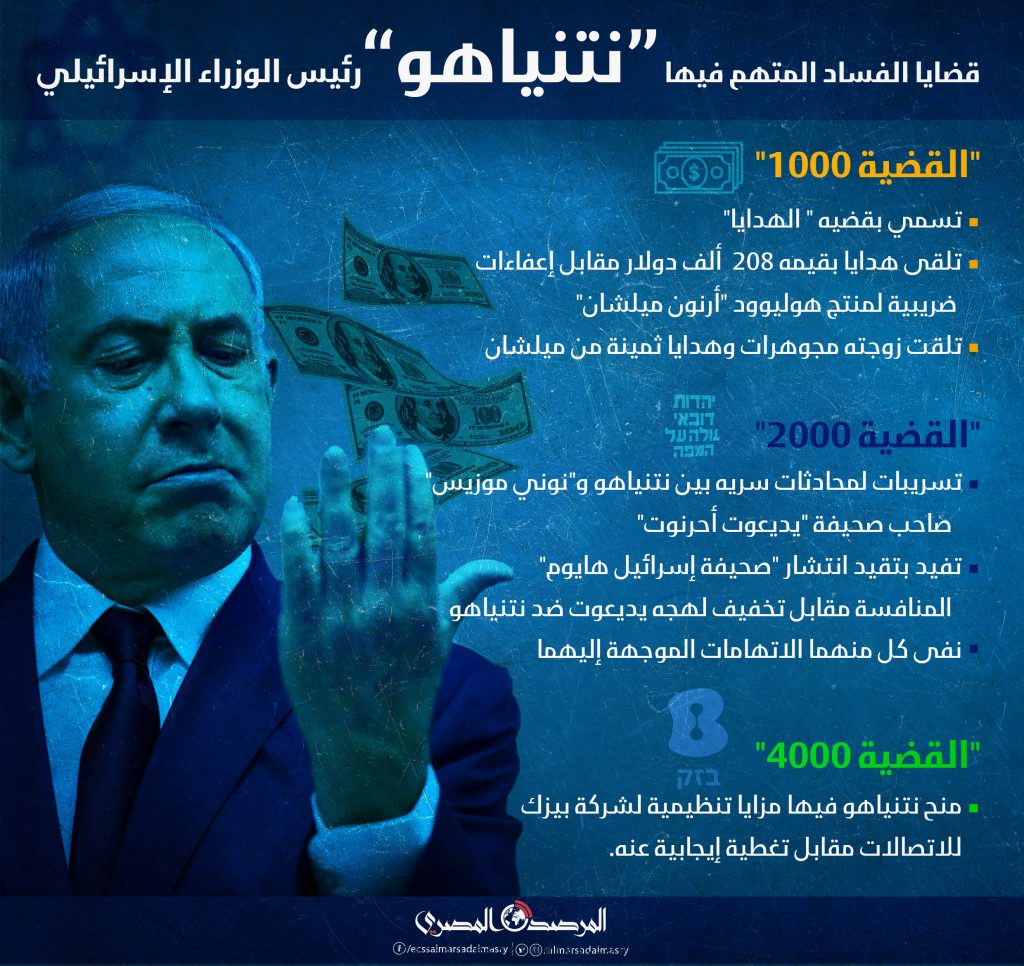 قضايا الفساد المتهم فيها “نتنياهو” رئيس الوزراء الإسرائيلي