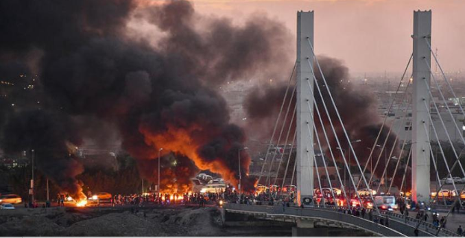 تتواصل في بغداد وعدد من المدن العراقية، اليوم الاثنين، احتجاجات تخللتها اشتباكات مع قوات الأمن، بالتزامن مع انتهاء هدنة حددها المحتجون للاستجابة لمطالبهم، وعلى رأسها الإسراع بتشكيل حكومة جديدة، وتغيير النظام السياسي. وفي غضون ذلك أحرق المحتجون صورة كبيرة لقائد «فيلق القدس» الإيراني قاسم سليماني ونائب رئيس «هيئة الحشد» أبو مهدي المهندس.