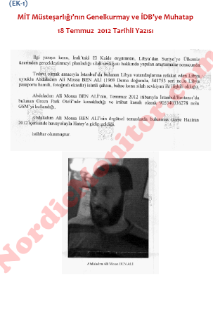 وكشف تقرير استخبارات الشرطة التركية، والصادر للتداول الداخلي، عن وجود روابط وثيقة بين أعضاء جماعة بن علي الجهادية الليبية ورئيس الوزراء في ذلك الوقت رجب طيب أردوغان.