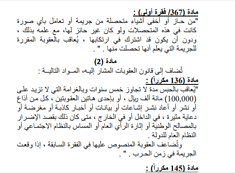 بموجب التعديلات الجديدة في نص المادة (136) مكرر يعاقب بالحبس مدة لا تتجاوز 5 سنوات وغرامة لا تزيد عن 100 ألف ريال قطري، أو بإحدى هاتين العقوبتين، كل من تناول بإحدى الطرق العلانية من الداخل أو الخارج الشأن العام للدولة أو أذاع أو نشر أو أعاد نشر أخبار أو بيانات أو إشاعات كاذبة أو مغرضة أو دعاية مثيرة.