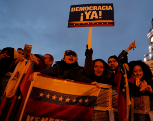 أقام زعيم المعارضة الفنزويلية والتي تعترف به الولايات المتحدة ودول أخرى كرئيس مؤقت للبلاد خوان جاويدو تجمع لمناصريه بالعاصمة الإسبانية مدريد في ختام جولته الأوروبية لكسب تأييد دولي لإسقاط حكومة الرئيس الفينزويلي  اليساري نيكولاس مادورو.
