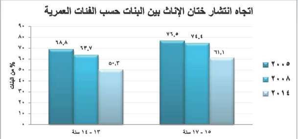 وقد ساهمت تلك الجهود في تغيير مؤشرات ختان الاناث ونجحت الجهود الحكومية والاهلية والدولية في تحقيق انخفاض في المؤشرات القومية الخاصة بممارسة ختان الاناث بين الاجيال الجديدة من عمر (15-17) الي 61% بحسب بيانات المسح السكاني الصحي لعام 2014. بالإضافة الي تجريم ختان الاناث في القانون المصري عام 2008، ( المادة 242 مقرر من قانون العقوبات).