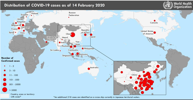 أصدرت منظمة الصحة العالمية تقرير حالة رقم (25) عن فيروس كورونا بتاريخ 14 فبراير 2020، إذ جاءت أهم النقاط التي ركز عليها التقرير في أنه لم يتم الإبلاغ عن أي حالات إصابة في آخر 24 ساعة في أي دولة، وتم الإبلاغ عن ثاني حالة وفاة خارج الصين كانت في اليابان لشخص لم يكن له تاريخ سفر للصين، وأبلغت الصين عن 1716 حالة إصابة وست حالات وفاة في آخر 24 ساعة.