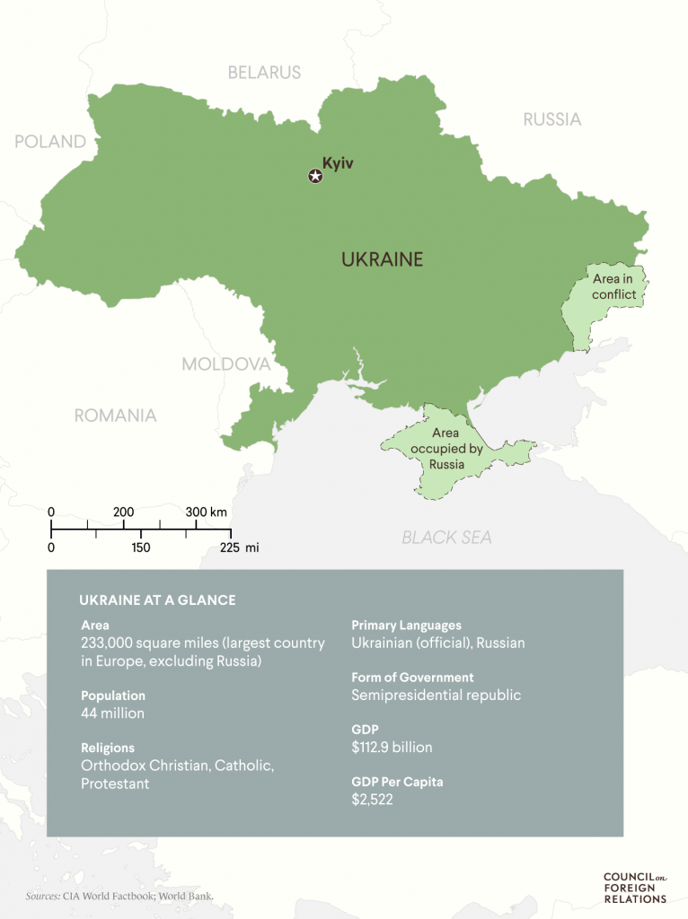 وخلال ما يقرب من ثلاثة عقود من الاستقلال، سعت أوكرانيا إلى صياغة طريقها كدولة ذات سيادة تتطلع إلى الانحياز بشكل كبير مع المؤسسات الغربية، بما في ذلك الاتحاد الأوروبي ومنظمة حلف شمال الأطلسي (ناتو). ومع ذلك، كافحت كييف لموازنة علاقاتها الخارجية والتغلب علي الخلافات الداخلية العميقة. من جانبهم دعم عدد كبير من سكان أوكرانيا الناطقين باللغة الأوكرانية في الأجزاء الغربية من البلاد تكاملًا أكبر مع أوروبا، في حين أن سكان الشرق الناطقين بالروسية يحبذون إقامة علاقات أوثق مع روسيا.
