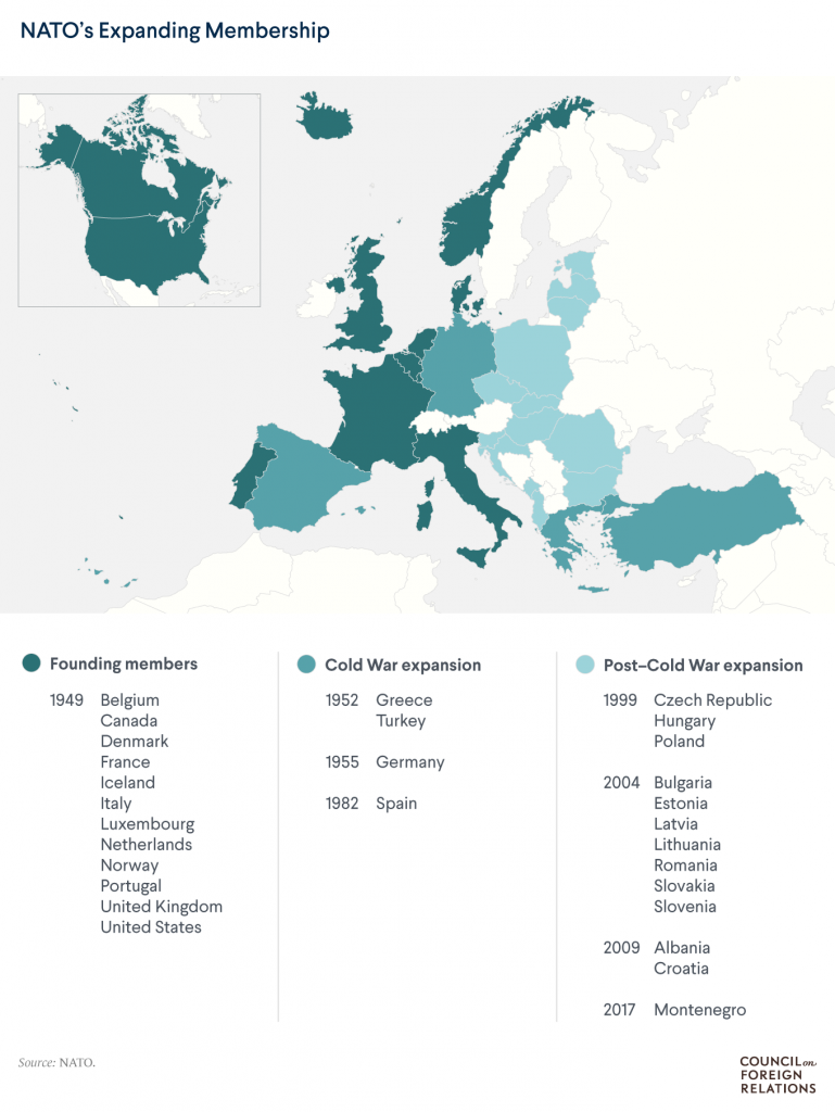 يختلف البعض حول دوافع روسيا من عدوانها علي أوكرانيا، بعض المحللين يرون أن توسيع الناتو في فترة ما بعد الحرب الباردة جعل روسيا تنظر له بقلق بالغ. ففي عام 2004 أضاف الناتو سبعة أعضاء، وضم في ذلك جمهوريات البلطيق السوفياتية السابقة إستونيا ولاتفيا وليتوانيا. وبعد أربع سنوات، عندما أعلن حلف شمال الأطلسي عن عزمه ضم أوكرانيا وجورجيا إلى الحلف في المستقبل، أوضحت روسيا أن الناتو قد تم تجاوز الخط الأحمر وبات يهدد مجالها الجيوستراتيجي بشكل كبير.