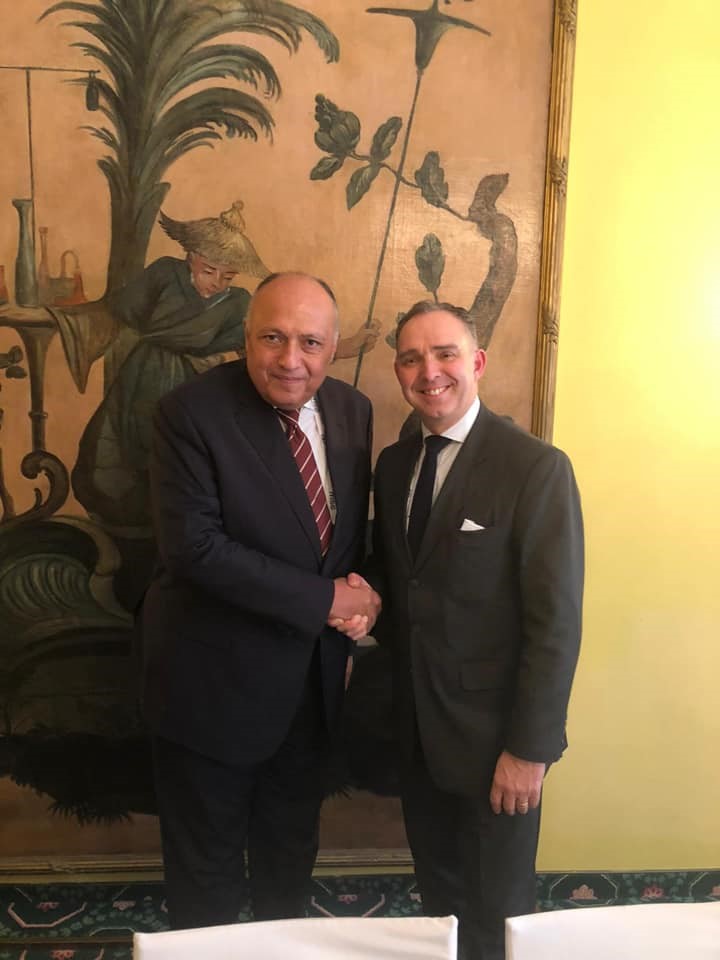 وناقشا الطرفان سبل تعزيز العلاقات السياسية والأمنية والاقتصادية والسياحية، وأهمية مواصلة الجهود للتصدي لكافة التحديات المشتركة، وخاصة استمرار التعاون القائم لمكافحة الإرهاب، وتنسيق جهود مواجهة ظاهرة تغير المناخ، حيث استعرض الوزير شكري الدور الذي تقوم به مصر في هذا الصدد، وسبل حل الأزمات المختلفة في الشرق الأوسط، وخاصةً الأوضاع في ليبيا.