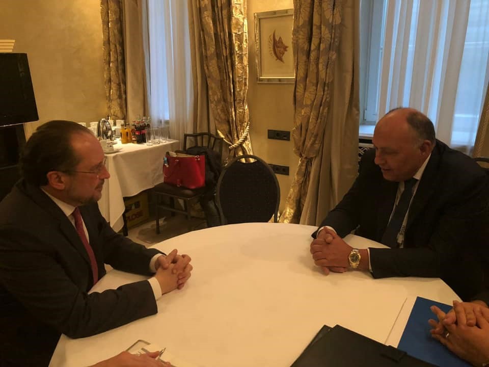 لقاء سامح شكري ووزير خارجية النمسا الكسندر شالينبرج: