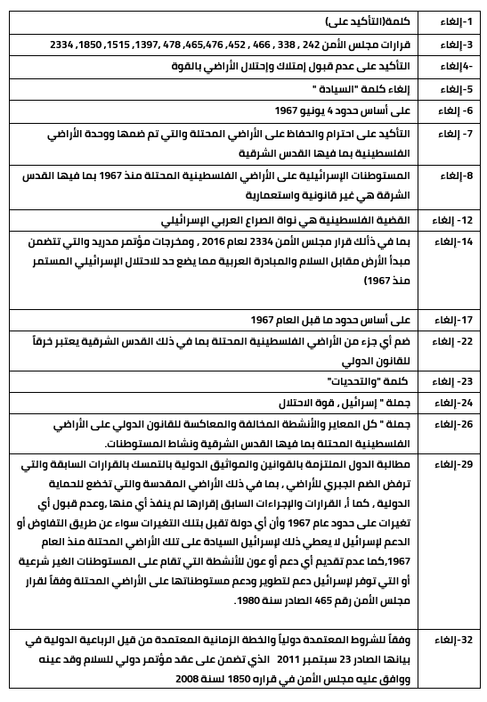 وفيما يلي أبرز التعديلات التي طلبتها الإدارة الأمريكية على مسودة القرار قبل سحبه :-