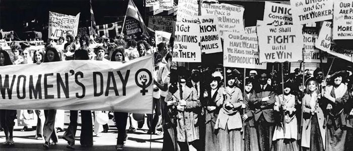 جاء الاحتفال بيوم المرأة العالمي على إثر خروج ما يقرب من 15000 امرأة عاملة من مصانع النسيج، بالولايات المتحدة الأمريكية، عام 1908 م، الي الشوارع، للاحتجاج على الظروف اللاإنسانية التي كن يجبرن على العمل خلالها، مطالبات بحقهن في بيئة عمل أفضل والحق في التصويت لصالح أي قرار يخدم مصالحهن. وفي العام التالي، أعلن الحزب الاشتراكي الأمريكي أول يوم وطني للمرأة.