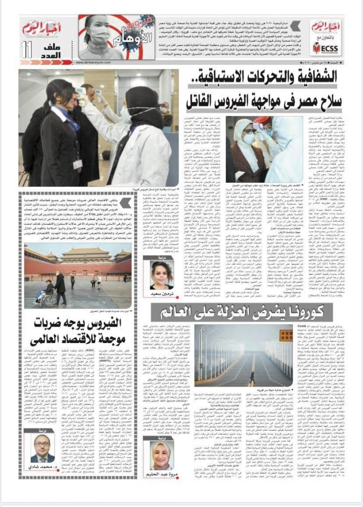 مشاركة موسعة لباحثو المركز المصرى للفكر والدراسات الاستراتيجية بعدد جريدة أخبار اليوم 14 مارس 2020