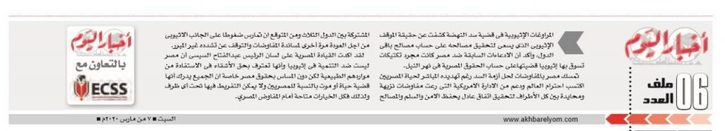 جريدة أخبار اليوم عدد السبت 7 مارس 2020 “مفاوضات سد النهضة”