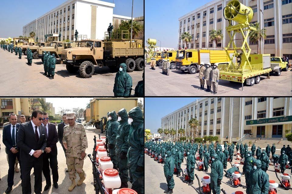 أصدر الفريق أول محمد زكى القائد العام للقوات المسلحة وزير الدفاع والإنتاج الحربي أوامره لإدارة الحرب الكيميائية للقوات المسلحة باتخاذ كافة الإجراءات الاحترازية لمواجهة فيروس كورونا، من خلال خطة تشمل الجامعات والمدارس وبعض المنشآت التي يتردد عليها أعداد كبيرة من المواطنين.