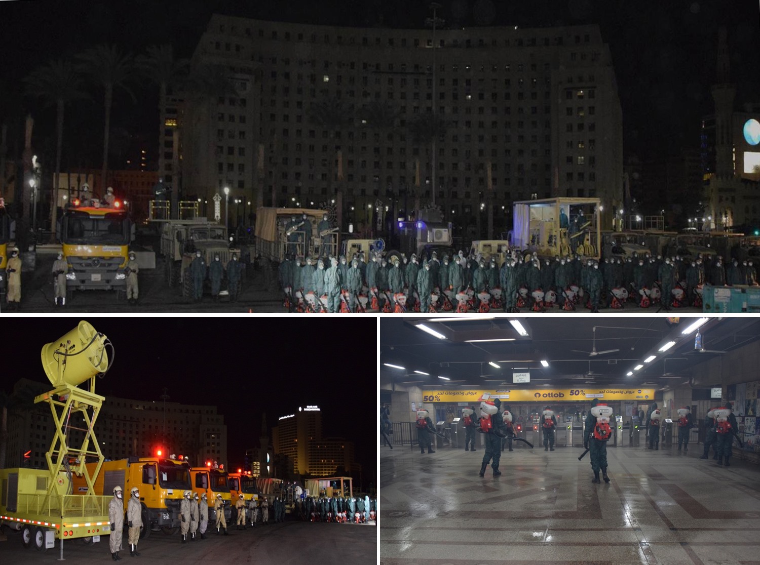 القوات المسلحة “تطهر وتعقم وقائيا” مجمع التحرير وعددا من الميادين والشوارع الرئيسية