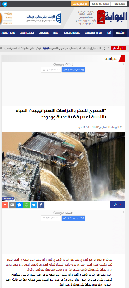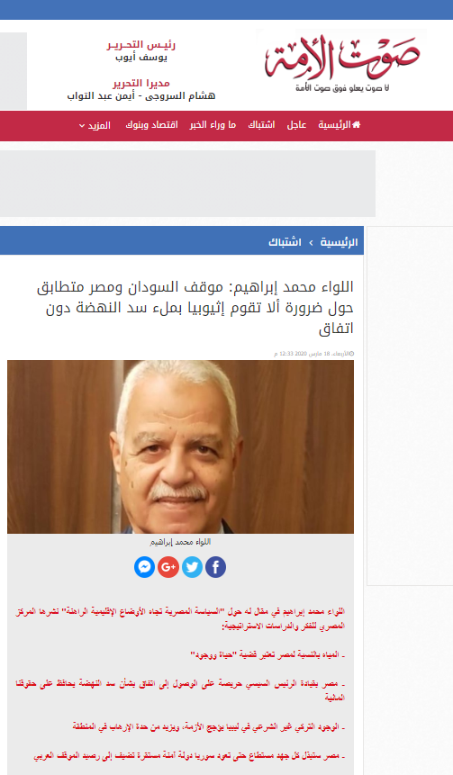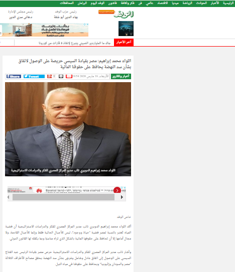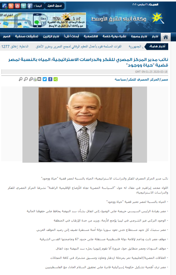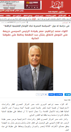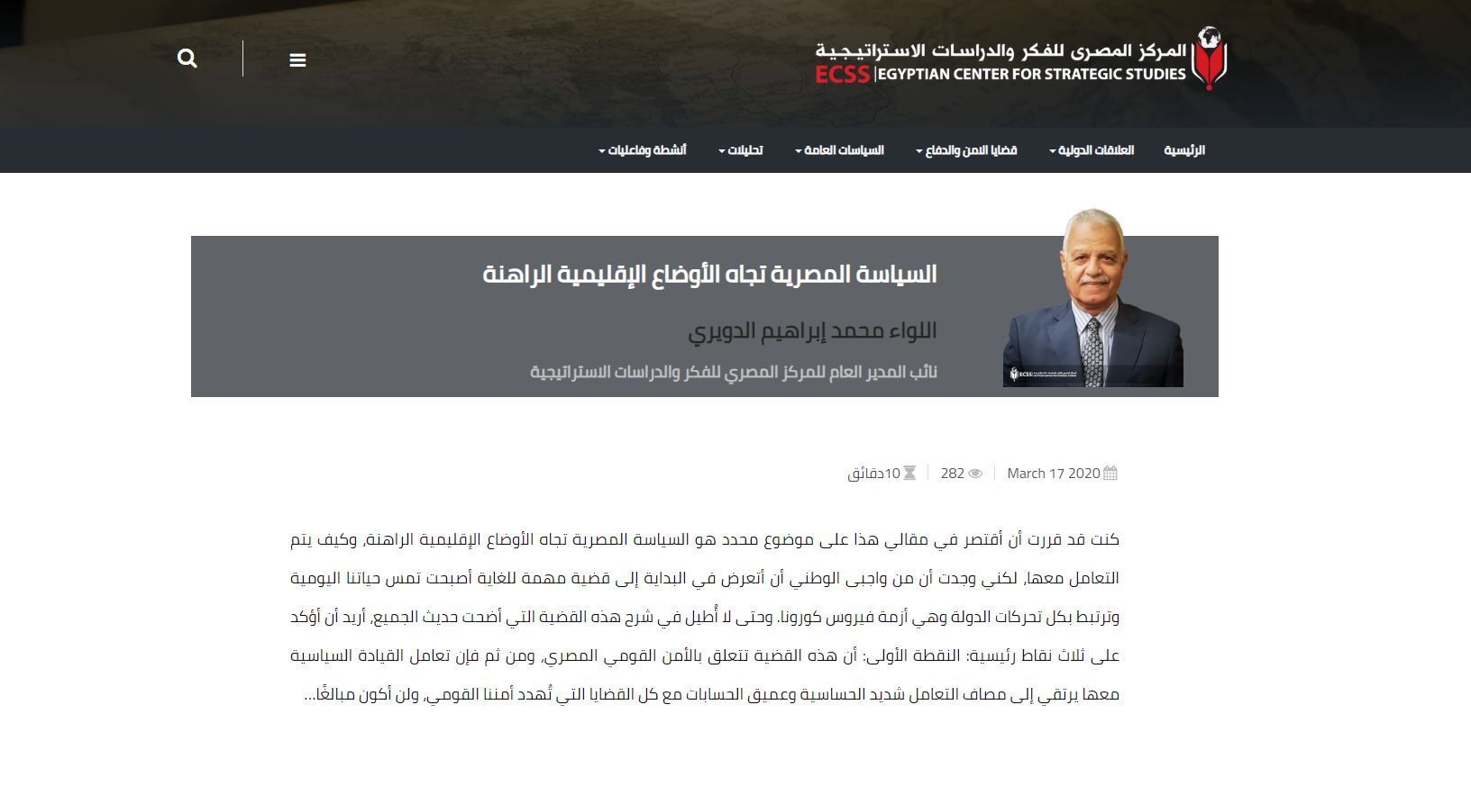 مقال رأي: “السياسة المصرية تجاه الأوضاع الإقليمية الراهنة” نشر بالموقع الإلكترونى للمركز للواء/ محمد إبراهيم الدويري نائب المدير العام للمركز المصري للفكر والدراسات الاستراتيجية