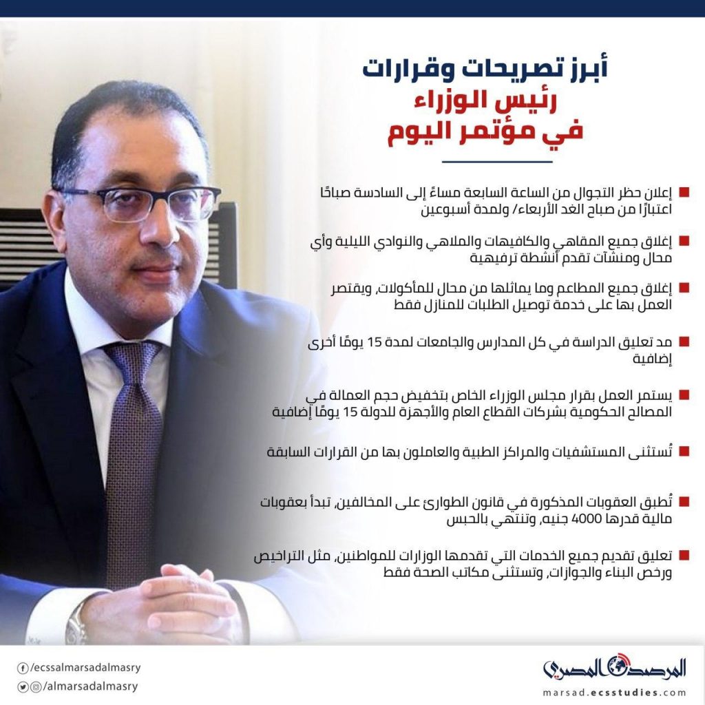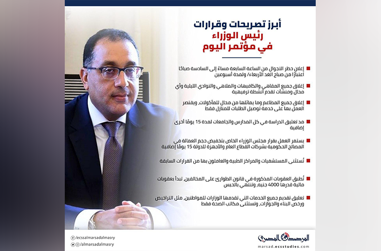 حزمة جديدة من الإجراءات الاحترازية اتخذتها الحكومة المصرية اليوم للحفاظ على صحة المصريين ومجابهة فيروس كورونا المستجد.