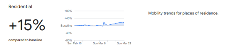 المؤشر الأهم كان المؤشر المتعلق بمدى تردد المصريين على منازلهم وأماكن سكنهم، حيث ازدادت بنسبة 15 بالمائة خلال الفترة المذكورة، وتستمر في التصاعد حتى الآن بفعل عدة عوامل، من بينها الالتزام بقرارت حظر التجوال الليلي، وبدء انتشار الوعي الشعبي في ما يتعلق بالعزل الذاتي.