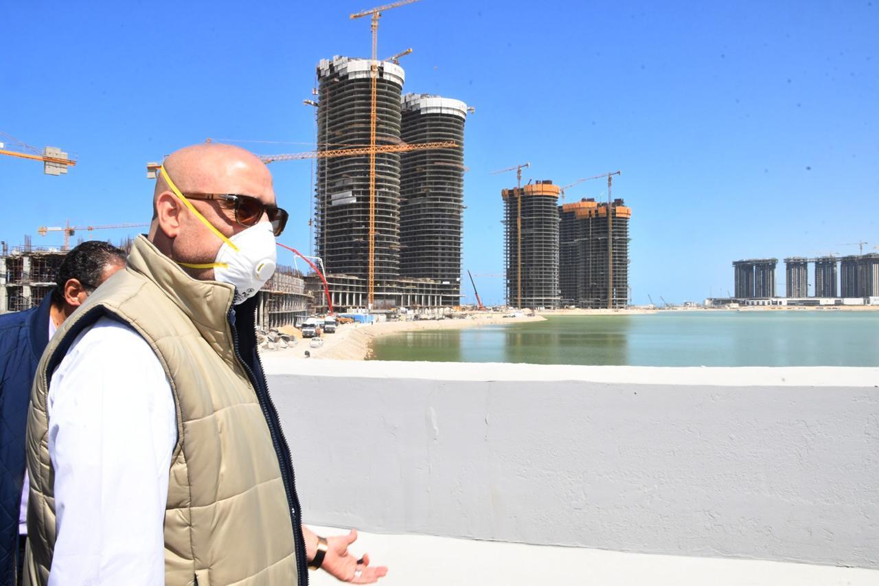 وزير الإسكان يتفقد منطقة الأبراج الشاطئية بمدينة العلمين الجديدة