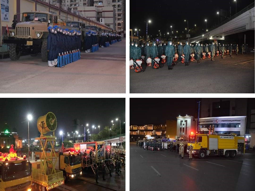 واصلت الإدارات التخصصية للقوات المسلحة أعمال التعقيم والتطهير الوقائى للميادين والأماكن الحيوية، ويأتي ذلك ضمن جهود القوات المسلحة لمعاونة اجهزة الدولة المختلفة للحد من انتشار فيروس كورونا المستجد، واتخاذ كافة التدابير الوقائية لحماية الشعب المصري.