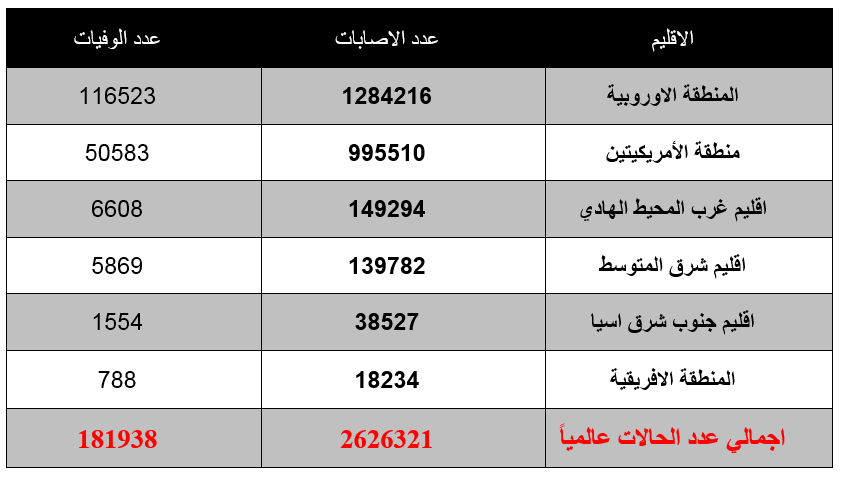 تطورات انتشار فيروس “كورونا” محليا وإقليميا وعالميا اليوم /السبت25 ابريل /