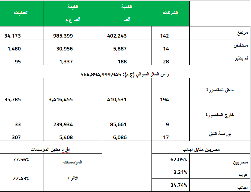 قراءة في سوق الأوراق المالية المصرية والعربية اليوم الأحد