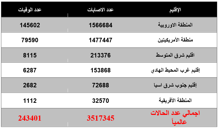 تطورات انتشار فيروس “كورونا” محليا وإقليميا وعالميا اليوم /الأربعاء في ٦ مايو/
