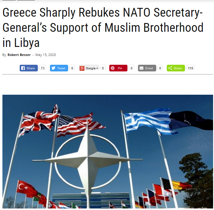 أورد موقع (جريج ريبورتر) اليوناني، تفاصيل حول رد فعل الخارجية اليونانية الحاد على تصريحات الأمين العام لحلف الناتو، ينس ستولتنبرغ، التي وردت خلال مقابلته المنشورة الخميس الماضي، في صحيفة (لاريبوبليكا)، الإيطالية اليومية، والتي تضمنت إشارة إلى حكومة فايز السراج في طرابلس، التي تقودها جماعة الإخوان المسلمين في ليبيا، باعتبارها الحكومة الشرعية في ليبيا.