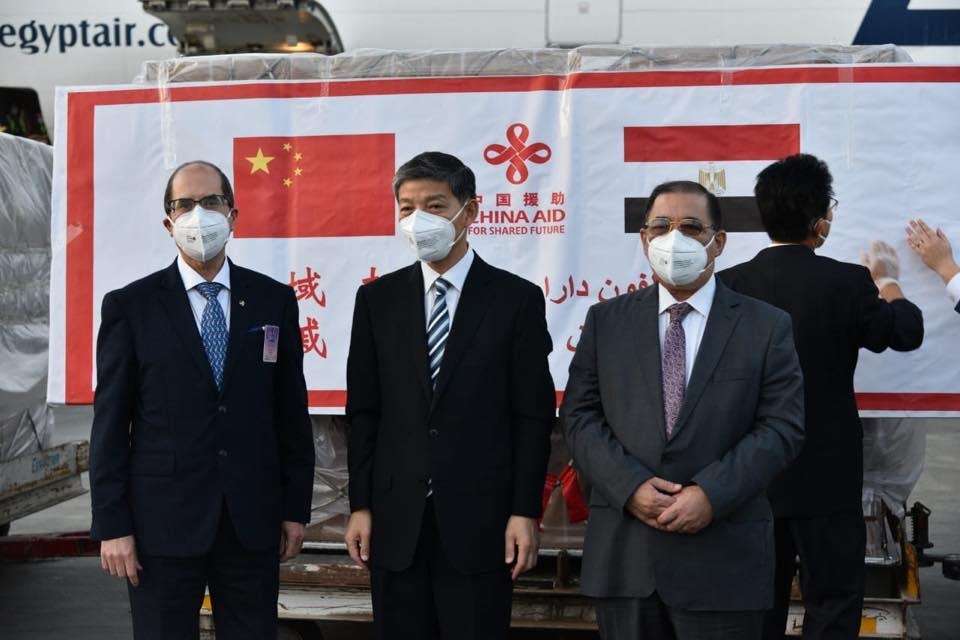 وأوضح أنه بالإضافة إلى الثلاث شحنات التي قدمتها الصين لمصر قام أيضا عدد من الشركات ومؤسسات المجتمع الصيني بإهداء مصر كميات من مستلزمات طبية وقائية، كما تم عقد 6 اجتماعات بين خبراء الصحة في مصر والصين عبر تقنية الفيديو كونفراس، لتبادل الخبرات بشأن مواجهة فيروس كورونا المستجد، بالإضافة إلى التعاون المشترك بمصنع الكمامات الطبية المتواجد على أرض مصر والذي يعمل بخمسة خطوط إنتاج، والذي من المقرر أن تبلغ إنتاجيته نصف مليون كمامة يوميًا.