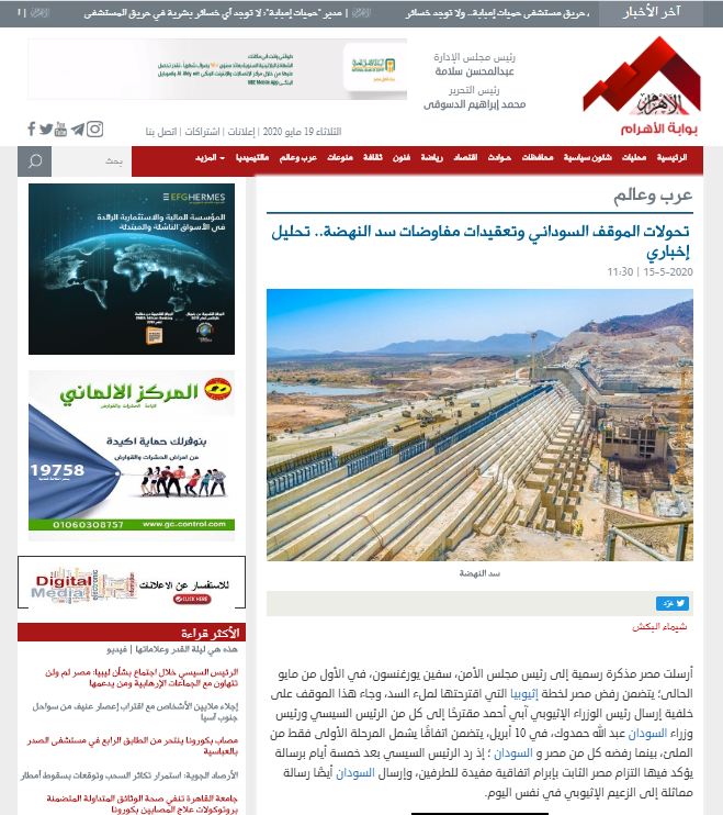 “تحولات الموقف السوداني وتعقيدات مفاوضات سد النهضة” نشر بموقع المرصد المصري للباحثة/ شيماء البكش بتاريخ 15 مايو 2020