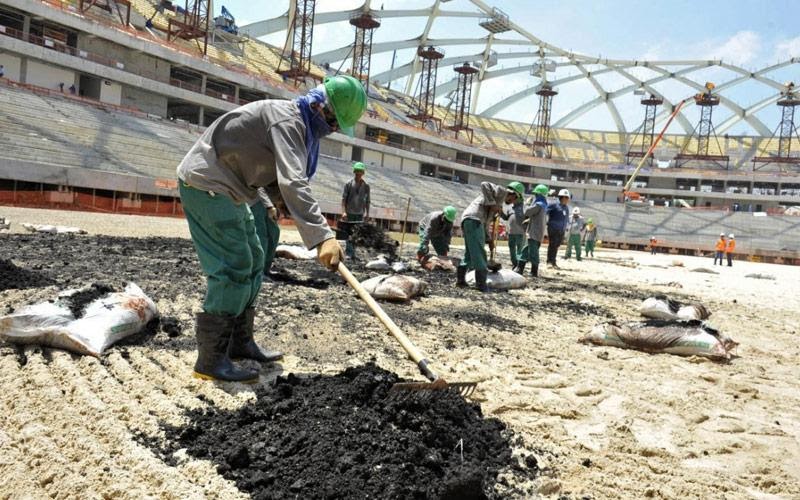 يقول الكاتب أن ما تفعله قطر في الوقت الراهن إزاء العمالة المخصصة لبناء الملاعب الجديدة، يمكن أن يطلق عليه “الرق المعاصر”، والذي في الكثير من الأحيان يمكن وصفه بأنه يشبه سجون عملاقة للعمال. كما يسترسل الكاتب، مشيرًا إلى أن المقاعد الجميلة المخصصة لاستضافة كأس العالم، وأنظمة الصوت والضوء الخلابة، تشيد بكفاءة قوة العمالة البنغالية والنيبالية والهندية المستعبدة في قطر. من هؤلاء اللذين تم تكريسهم لأجل تنفيذ هذه الاسقاطات الواسعة النطاق للسلطة المفرطة.