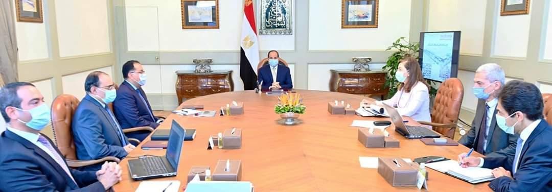 اجتمع  الرئيس عبد الفتاح السيسي اليوم السبت مع الدكتور مصطفى مدبولي رئيس مجلس الوزراء، والدكتورة هالة السعيد وزيرة التخطيط والتنمية الاقتصادية، وذلك بحضور اللواء أمير سيد أحمد مستشار رئيس الجمهورية للتخطيط العمراني، واللواء طبيب بهاء الدين زيدان رئيس مجلس إدارة الهيئة المصرية للشراء الموحد والإمداد والتموين الطبي، والسيد أيمن سليمان المدير التنفيذي لصندوق مصر السيادي”.