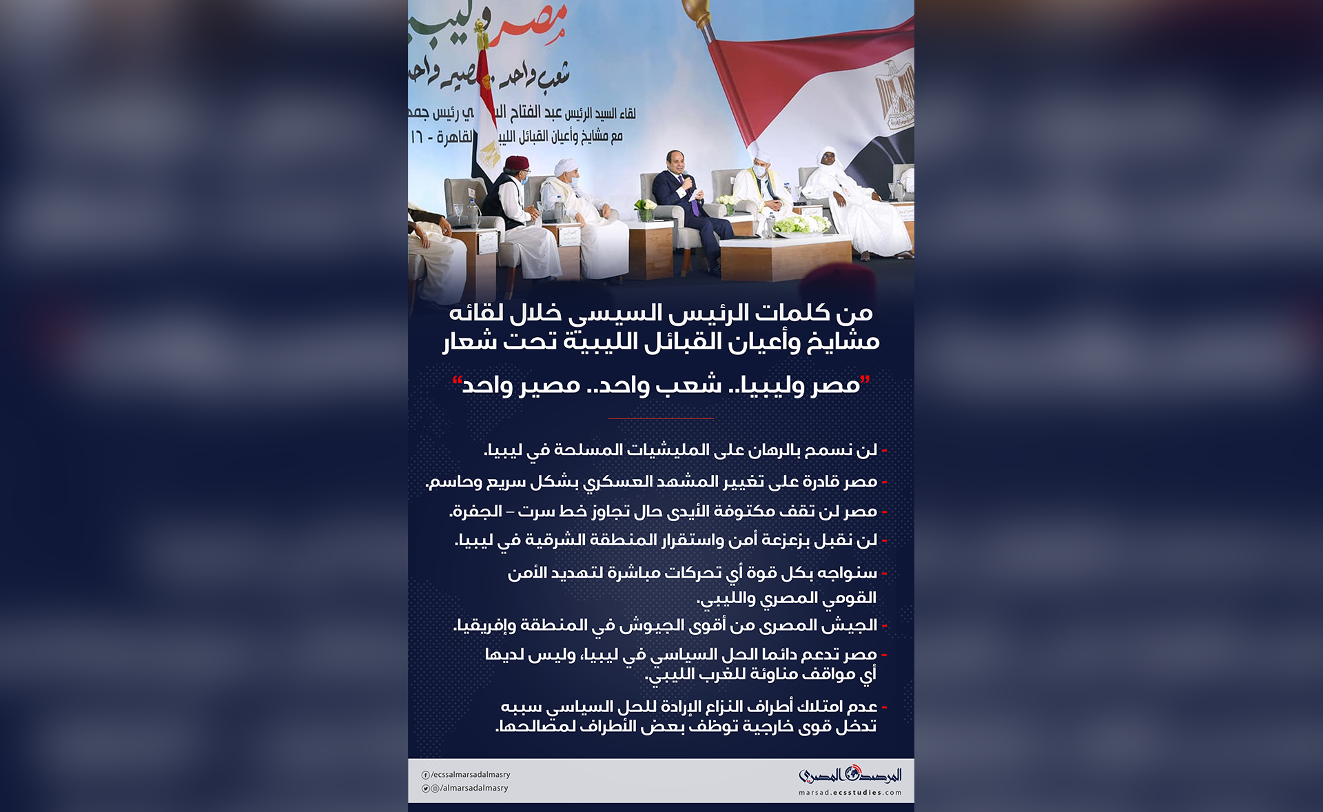 أبرز تصريحات الرئيس السيسي خلال لقاءه مشايخ وأعيان القبائل تحت شعار “مصر وليبيا .. شعب واحد .. مصير واحد”.