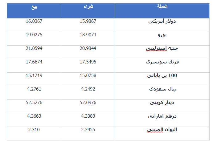 نشر (البنك المركزي المصري) على موقعه الاليكتروني متوسط أسعار العملات أمام الجنية، وقد اتضح منها تباين أسعار صرف العملات الأجنبية والعربية مقابل الجنيه المصري خلال تعاملات يوم الأربعاء 5 أغسطس 2020، وفيما يلي عرضها: