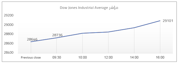 افتتح مؤشر داون جونز “مؤشر يضم أكبر ثلاثين شركة صناعية أمريكية” تعاملاته ليوم 02 سبتمبر عند مستوى 28646 وأغلق عند مستوى 29101 محققا ارتفاعا بمقدار 455 نقطة أي ما يساوي 1.59%.