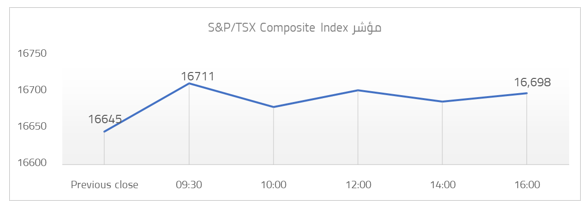 افتتح مؤشر S&P/TSX “مؤشر يضم 70% من راس المال السوقي ببورصة تورنتو بعدد 250 شركة” تعاملاته ليوم 02 سبتمبر عند مستوى 16645 نقطة، وأغلق عند مستوى 16698 نقطة ليحقق ارتفاعا بمقدار 53 نقطة أي ما يمثل 0.32%. يتداول المؤشر حاليا بين مستوى دعم 16000، الذي باختراقه يتجه المؤشر صوب مستوي 15600، أما مستوى المقاومة فتمثل منطقة 16800 التي باختراقها يتجه المؤشر صوب مستوى 17500.