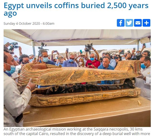 عقد الدكتور خالد العناني وزير السياحة والآثار، السبت 3 اكتوبر 2020, مؤتمرًا صحفيًا عالميًا، لإعلان الكشف الأثري الجديد في منطقة سقارة الأثرية، الذي وصفته الوزارة بـ”الأضخم”.