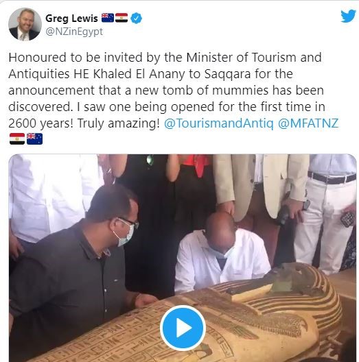 وأعرب سفير دولة المكسيك عن سعادته بعملية فتح أحد التوابيت المكتشفة أمامه لأول مرة، كما غرد سفير دولة فرنسا واصفًا الكشف بأنه رائع وغير عادي.