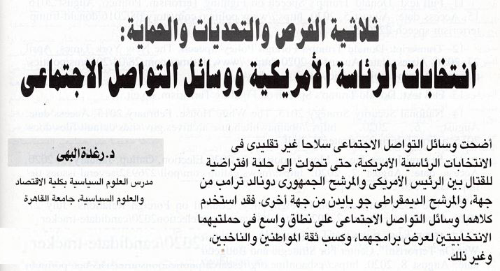 المركز المصري في الإعلام السياسة الدولية | “ثلاثية الفرص والتحديات والحماية: انتخابات الرئاسة الأمريكية ووسائل التواصل الاجتماعى” – العدد 222 – أكتوبر 2020 فريق المرصد المصري أرسل بريدا إلكترونيا أكتوبر 3, 2020 أقل من دقيقة فيسبوك تويتر لينكدإن ماسنجر ماسنجر واتساب تيلقرام مشاركة عبر البريد السياسة الدولية عدد 222 أكتوبر 2020 رغدة البهي-minDownload فريق المرصد المصري+ postsBio ⮌فريق المرصد المصريhttps://marsad.ecss.com.eg/author/marsad/اللواء محمد إبراهيم: مصر متمسكة بكافة ثوابت القضية الفلسطينية ولن تحيد عنهافريق المرصد المصريhttps://marsad.ecss.com.eg/author/marsad/اللواء محمد إبراهيم: مصر أسهمت بدور رئيس في صياغة الهدنة بغزةفريق المرصد المصريhttps://marsad.ecss.com.eg/author/marsad/البيان الختامي لاجتماع أعضاء لجنة الاتصال الوزارية العربية بشأن سوريافريق المرصد المصريhttps://marsad.ecss.com.eg/author/marsad/وزير الخارجية في مقال بصحيفة “واشنطن تايمز”: حل الدولتين ممكن بين الفلسطينيين وإسرائيل فريق المرصد المصري أرسل بريدا إلكترونيا أكتوبر 3, 2020 أقل من دقيقة فيسبوك تويتر لينكدإن ماسنجر ماسنجر واتساب تيلقرام مشاركة عبر البريد شاركها فيسبوك تويتر لينكدإن سكايب ماسنجر ماسنجر واتساب تيلقرام ڤايبر لاين مشاركة عبر البريد طباعة