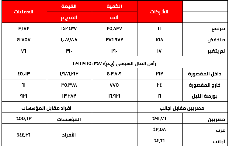 اتجاهات التراجع مازالت مُسيطرة على السوق المصرية.