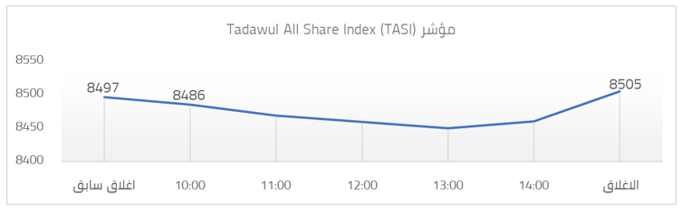 افتتح مؤشر TASI “مؤشر يضم جميع الشركات المقيدة بالسوق السعودي” تعاملاته ليوم 22 اكتوبر عند مستوى 8497 نقطة، وأغلق المؤشر عند مستوى 8505 نقطة محققا ارتفاعا بمقدار 8 نقطة أي ما يمثل 0.10%.
