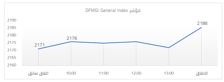 افتتح مؤشر DFGGI “المؤشر العام لسوق دبي المالي” تعاملاته ليوم 22 اكتوبر عند مستوى 2171 وأغلق عند مستوى 2186 محققا ارتفاعا بمقدار 14.37 نقطة، أي ما يمثل 0.66%.