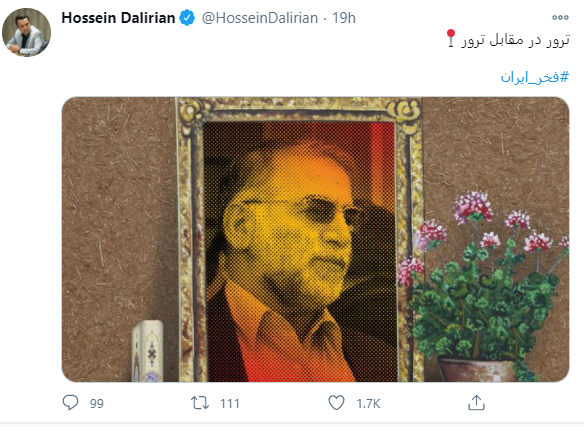 فعلى سبيل المثال، نشر الصحفي الإيراني المختص بالشؤون العسكرية “حسين دليريان” تغريدة له على تويتر عنونها بـ “اغتيال مقابل اغتيال”.