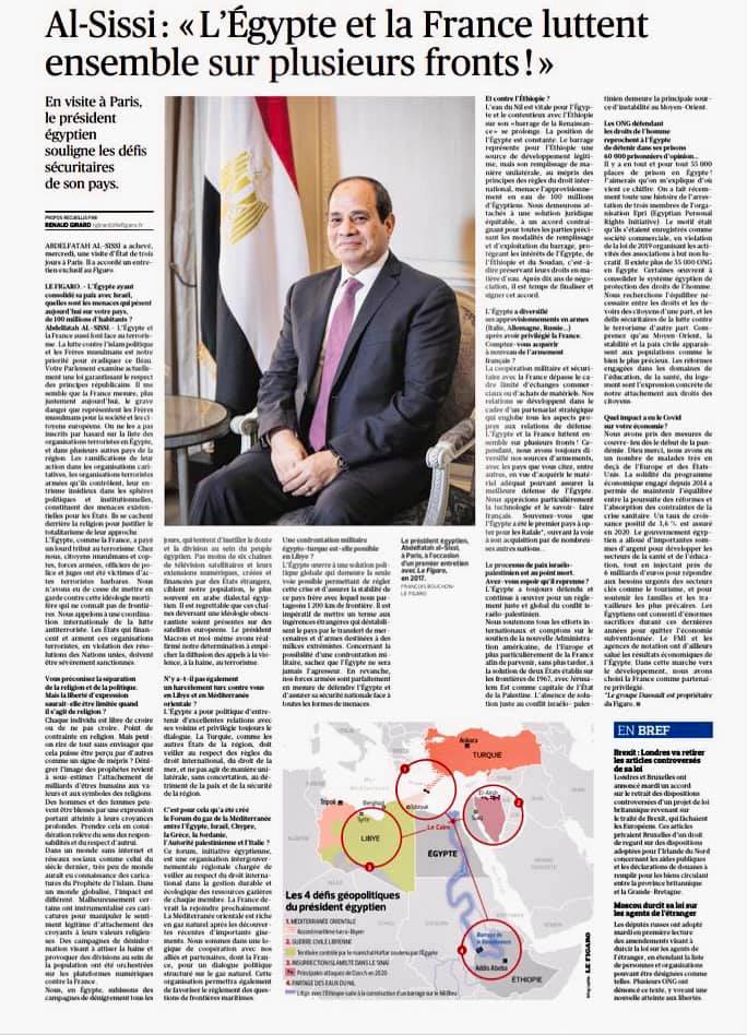 السيسي في حديث لصحيفة “لوفيجارو”: مصر وفرنسا تحاربان معا على عدة جبهات ودفعتا ثمنا باهظا للإرهاب