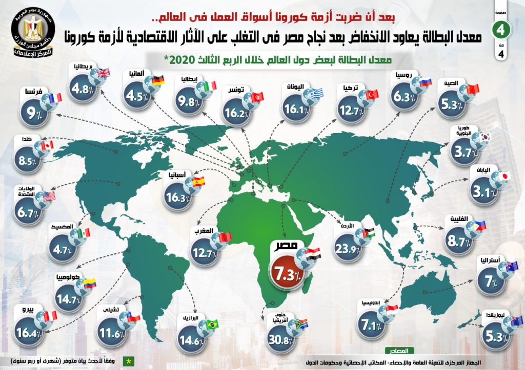 نشر المركز الإعلامي لمجلس الوزراء، تقريرا يسلط الضوء على تجاوز مصر الآثار السلبية لأزمة كورونا وتحقيقها لمعدل غير مسبوق للبطالة رغم التحديات الاقتصادية منذ عام 2010.