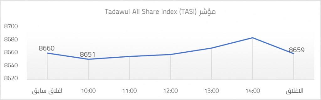 افتتح مؤشر TASI “مؤشر يضم جميع الشركات المقيدة بالسوق السعودي” تعاملاته ليوم 15 ديسمبر عند مستوى 8660 نقطة، وأغلق المؤشر عند مستوى 8659 وهو نفس مستوى الفتح تقريبا بإنخفاض بمقدار 0.9 نقطة أي ما يمثل0.01%.