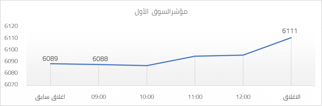 6111 نقطة وحقق ارتفاعا بمقدار 22 نقطة عن الإغلاق السابق أي ما يمثل 0.36%، تمثل
